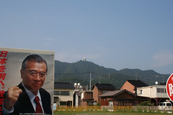 山の上に天文台が見える。あちらは、島根県。