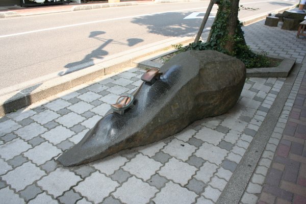 ブロンズ像もたくさん。有名なものから、見たこともない妖怪まで・・・。鬼太郎の手の上には、目玉おやじが・・・。