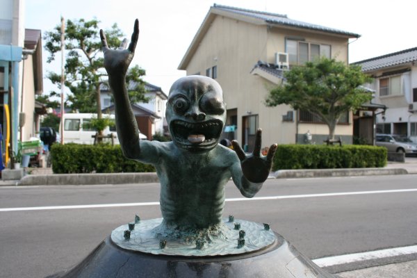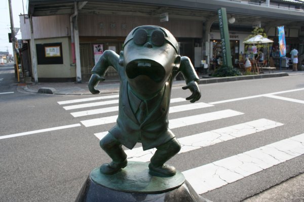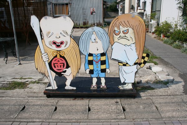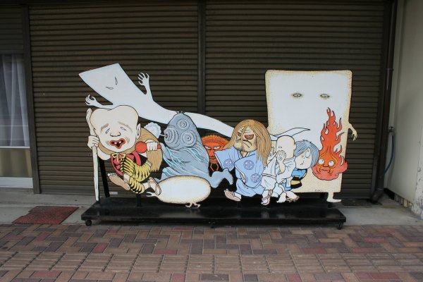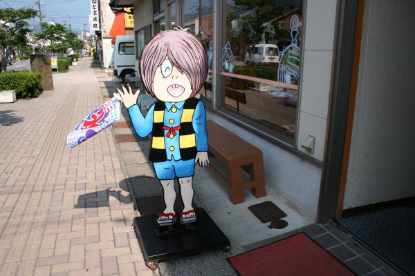 約800メートル続く水木しげるロードには、鬼太郎の仲間たちがいっぱい。まずは、ペラペラの看板系を紹介。