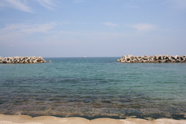 海の水は、綺麗だが、テトラポットで囲まれた海水浴場は、ちょっと興ざめかな・・・。