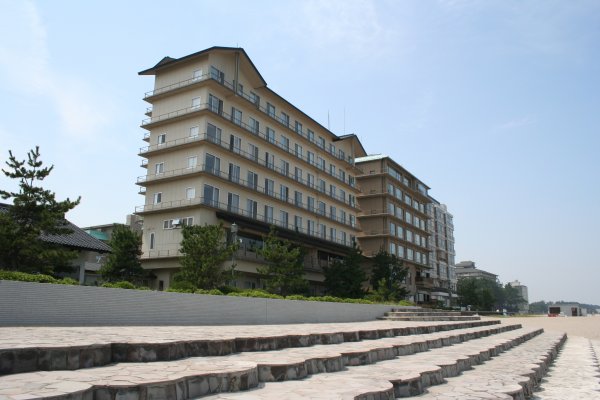 米子市の中心街から車で15分程度、山陰最大の規模を誇る大温泉街。目の前は日本海、大山も眺められるという立地条件も申し分ない所だが、街から近いため普通の住宅街という感じで、あまり風情はない。