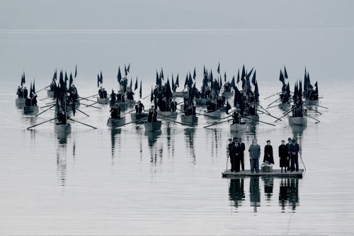 映像の構図は、美しいが、物語は、曇天の中、黒、黒、黒のイメージだ。次々に起こる不幸、救いも希望もない展開に、かなり落ち込む。 また、やたらと上映時間が長い。同じ台詞、同じ動作が延々と繰り返されるさまは、正直くどい。これがテオ・アンゲロプロス風なのだけど・・・。 型 にはまった様式美は、素晴らしいのだが、なんか新しいものも欲しい気がした。それでも、川を行くボートや筏のシーン、干してある白布が風になびきながら楽 団員の音楽が交差するシーン、汽車が横切り通り過ぎた後の向こう側の場面など、目に焼きつく印象的な映像美は、流石だ。 ラスト・シーンは、胸がかき乱されるほど、切なく悲しい。栗4つ。 日比谷シャンテシネ1にて。 |