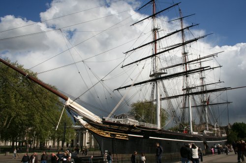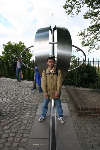 グリニッジ標準時で有名なグリニッジ。天文台のある丘の下には、海事博物館と海軍大学がある。その向こうにドックランズの高層ビル群が聳える。 緑の公園では、フリスビーする人、ボール遊びする人、犬の散歩する人と、休日の何とも和やかな景色だった。 丘の上に、王立天文台があったが、今は博物館となっている。現役の天文台は、空気の澄んだ郊外に新しくできたそうだ。 かつての天文台。中は、博物館になっており、当時の天体望遠鏡もそのまま置いてある。天文台の歴史、海洋時計や原子時計などあらゆる時計の展示がされていた。 ここが経度0度。グリニッジ子午線。世界標準時の基準だ。ちょうど天文台正面になる。 これが、カティー・サーク号。インドからお茶を運んできた船。 「カティー・サアアアク」と渋い声でお酒のCMがあったよね。 |