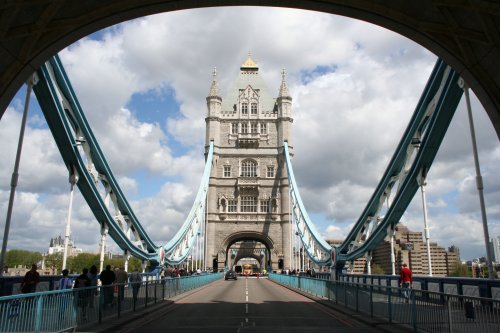 世界で最も美しい橋の一つ。跳ね橋で、今でも船を通すため日に1、2度開閉するらしい。ロンドン塔に似合うよう架けられた橋で、この橋自体が塔というより、ロンドン塔へ通ずるという意味でタワー・ブリッジらしい。上の橋を通るには、お金がかかる。