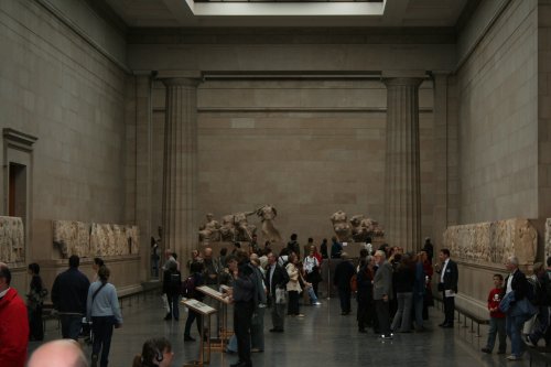 エルギン・マーブルの展示室。反対側の破風の彫刻群もあるが、どちらかかというとパーツのみの印象。