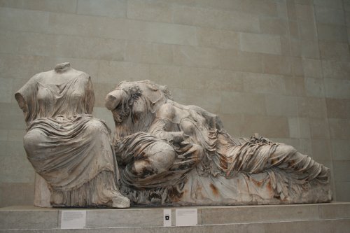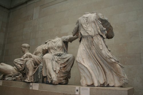 パルテンノン神殿の破風を飾った傑作彫刻群。ロゼッタ・ストーンと並ぶ大英博物館の至宝。これは、この博物館最大の見どころと言っていい。三角形の美しさは、中心へと視線を促し惹き込まれる。ここにあることで、最近、酸性雨の激しいアテネの被害から免れている。
