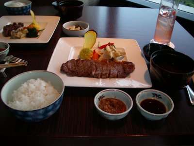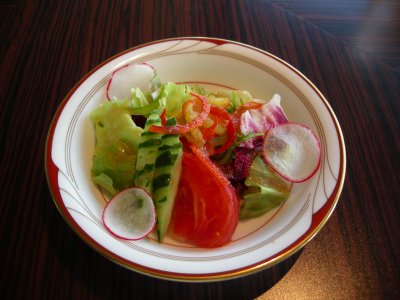 和食の「雲海」がなくなってしまい、和洋折衷のレストラン「彩風」になっていた。これは、前菜の棒々鶏。