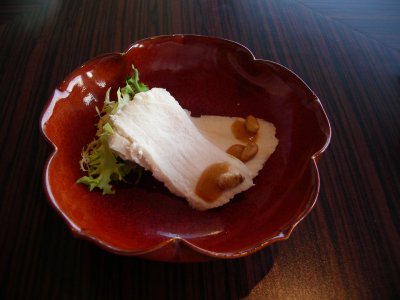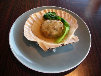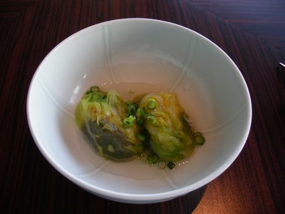 こちらも前菜。椎茸と蟹のキャベツ包み。