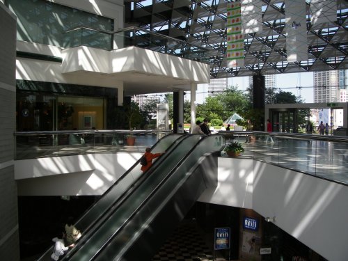 聖路加タワーのロビー。明るく開放的で、隅田川散歩の休憩に最適です。