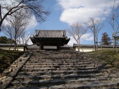 ここは、訪れる人が少ないですが、東大寺の中では、こじんまりしていて、かつ落ち着く場所です。階段と門と空の構図が素敵です。