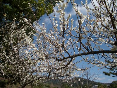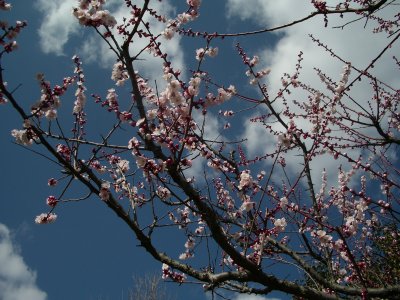 奈良公園に咲く花。青い空、白い雲に映えます。