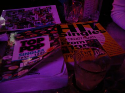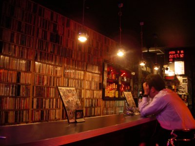 バーの壁に並んでいるのは、主に80年代が中心のCDコレクション。飲み物か食べ物を注文すると一品につき、一曲リクエストできます。ここで、いかに渋いリクエストができるかが腕の見せどころなのです。ただし、あまり渋すぎるとコレクションにありませんので、あしからず。 ビルボード・ヒットチャートのアーカイブ本を見ながら、ああ、この頃、こんな曲流行っていたねえとか、ああ、こんなアーチストいたねえ、なんて話を弾ませながら、自分のリクエスト曲に頭を悩ますのであります。