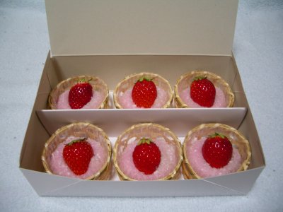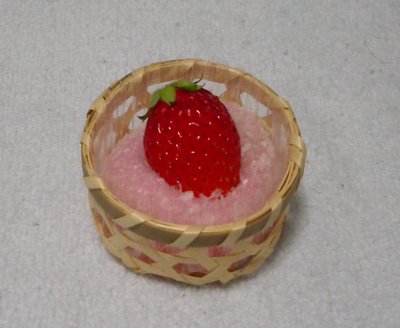 一つ、一つ、可愛い籠に入っているのだ。苺がちょっと人工的な色だが、これは、カメラのせい。上手く撮れなかったの・・・。