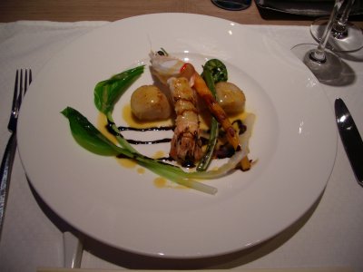 僕が選んだ魚料理は、帆立と海老。これ、ソースも美味しかったです。