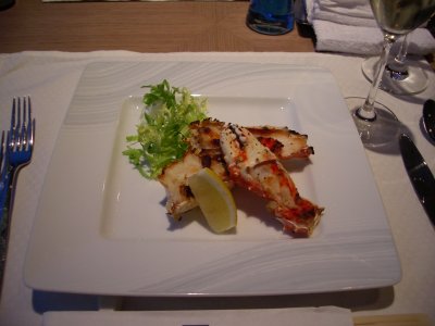 こちらは、栗坊が選んだ前菜「焼き蟹」。美味しい・・・。