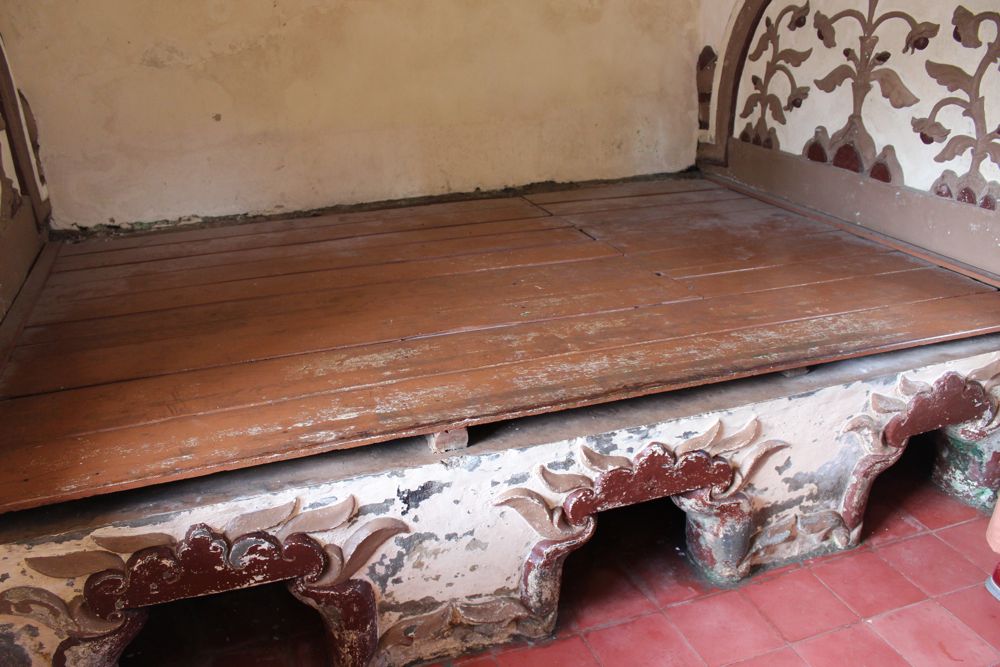 王家の人々が水浴びをするプール。手前が、王様の王妃たちのプール。向こう側の小さいプールが子供達のプールだ。その奥の建物が王妃と子供達の更衣室。 水はとってもきれいなのに、プールの底が黒く変色してしまっていて残念。底も青かったらもっときれいに見えたと思う。 こちらは、王様専用プール。塔の上に登ると向こう側にある王妃たちのプールが見える。王様は、窓から今宵の相手を選び、選ばれた王妃はこちら側の王様専用プールで一緒に水浴びができる。塔の階下左側に王様専用更衣室、右側にお泊まりになれるサウナ付きのベッドがある。 水は、きれいなんだけどねえ。 |