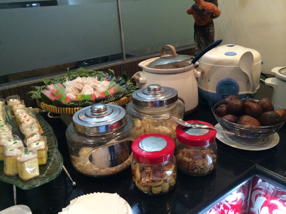 小さいながらも空港内にガルーダ・インドネシア航空のラウンジがあった。 ラウンジでまったりしていたが、一本前のジャカルタ行きの便が1時間遅延。乗るはずの便も遅れるみたい。でも、どれくらい遅れるのか、いつゲートをくぐればいいのか、何の案内もない。インドネシア語ではあったのかもしれないけど。 とりあえず定刻の搭乗時間にゲートに向かう。乗るはずの飛行機は来てないみたい。結局1時間以上遅れて出発。なんか行きよりかなり短い飛行時間だったよ。食事も出なかった。 ジャカルタ空港でお土産を見ようと思ったけど、そんな時間もなく、ラウンジも見ることができず、急いで成田行きの便のゲートへ。 帰りの機内食は、さっぱりしたものが食べたくて和食に。 到着前の軽食は、うどん。 成田空港に着いて、帰りはスタバのチョコバナナフラペチーノを飲みながら成田エクスプレスに乗り込んだ。 インドネシア、楽しかったなあ。バティック買いにまた行きたい。 |
