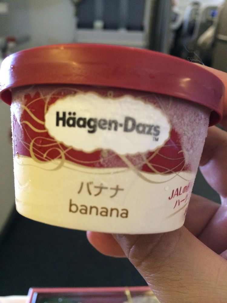ガルーダだとファーストクラスに乗らないと食べられないハーゲンダッツだ。それもバナナ、嬉しい。
