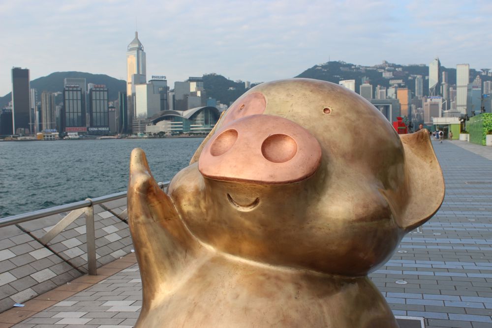 朝食。今日は、朝から良い天気。滞在中は、奇跡の晴れ間が続いた。その後は、ずっと雨、雨、豪雨、雷雨だったみたいよー。この時期の香港は、旅行には向かないねえ。 朝食のレストランにあった蜂蜜。蜂の巣がそのまま吊るされており、ちょっとづつ滴り落ちる蜜。これがあまりの美味しさに「うまいっ」と思わず声をあげてしまった。何にも付けず、蜂蜜だけ舐めちゃった。 スタークルーズの船も湾を横切る。香港から船旅という選択肢もあったな。 今日は、晴れ渡って気持ちよそうだったので、外にあるアベニュー・オブ・スターズを散策することに。 アベニュー・オブ・スターズは、ヴィクトリア湾を望むベイサイドに築かれた通り。夜景もイルミネーション・ショーも見られるし、そもそも香港の摩天楼が一望できるのでいつでも観光客でいっぱい。早朝は、地元の人がジョギングしている。 映画にちなんだ観光名所。香港スターの手形がたくさんある場所。 小さな子供がよじ上って抱きついて写真を撮っていたけど、ブルース・リーのこと知らないよねえ。 香港島の摩天楼が一望できる。早朝は人も少なく、天気がいいとすがすがいしい。インドネシアで購入したバティックを着て記念撮影。 昨年は気付かなかったけど、豚ちゃんの像がいた。いつからあったんだろう? なんだかよく分からなかったけど、これマクダル君と言って、香港で大人気のアニメなんだって。日本でも鈴木福、剛力彩芽の吹き替えで映画が公開されていたみたい。 「あんたは、うんちを出すお尻の穴より怠け者よ」って母親の台詞がすごいなあ。(笑) |