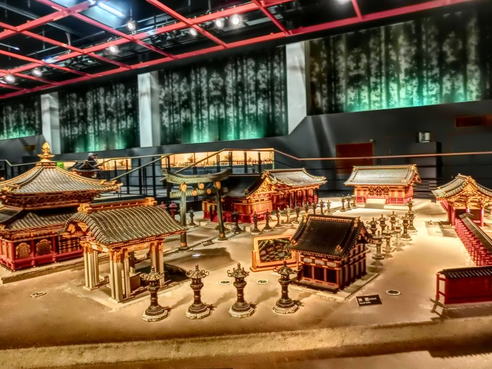 橋のたもとに威風堂々とした白い鳥居。 参道。両脇にはお店もある。 二の鳥居の奥に拝殿と本殿。 こちらの絵馬殿の裏からは、急な階段が伸びていて秋葉神社へと続く。秋葉神社と言えば、落語でもお馴染み、火伏せの神様だ。 境内には、高山屋台会館があり、高山祭の秋祭の屋台が展示されている。巫女さんが丁寧に説明してくれる。 京都の祇園祭の山鉾と比べるとかなり小ぶりだけど、今や高いビルに埋もれてしまう京都の山鉾より、低い建物ばかりのこちらの屋台の方が風景に映えるかもなあ。 館内では、秋祭のビデオ上映もあり、昼と夜の美しい祭の様子を見ることができる。このからくり人形の動くところもビデオで見られる。その精巧な動きにびっくり。 入り口で写真を撮られて、出口で販売するというディズニーランド商法にまんまとやられてしまったよ。まあ、一人旅だったので、実はこういうサービスがありがたかったりする。 そして、こちらの入場券で、もう1つの建物櫻山日光会館にも入場できる。 ここには、日光東照宮が1/10のサイズで再現されている。絢爛豪華ぁ〜。 櫻山八幡宮 岐阜県高山市桜町178番地 |