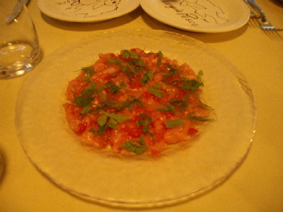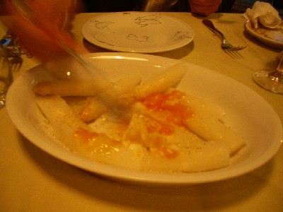 能の後、千駄ヶ谷駅前のユーハイムでお茶をして、そのまま3人でディナーへ。千駄ヶ谷と原宿の間にあるイタリアンのMANGIA PESCEへ。 ここは、お魚料理が有名。まずは、本日採れたての魚を見せてくれて、どれを食べようかと悩む。 今日は、こっちをみているホウボウ君を食べちゃうことにした。 前菜は、金目鯛のカルパッチョ。 もう一つ前菜、ホワイト・アスパラガスの温泉玉子和え。 こんな大きいアスパラガス初めて見た。 ニンニクのスパゲッティにまぐろのカラスミをすってすってかけまくる。 フォアグアとグリーンアスパラガスのニョッキ。 さきほどのホウボウ君は、今夜のメインとしてアクアパッツアになった。 ちょっと風変わりな風貌の魚だけど、美味しいなあ。 デザートに苺のミルフィーユ。イメージとは大分違ったけど、美味しかった。 しのさん、かさん、また行きましょうね。 MANGIA PESCE 東京都渋谷区千駄ヶ谷3-50-11 明星ビル 1F TEL : 03-3403-7735 休業 : 毎週月曜日 月曜日が祝日に当たる場合は、翌火曜日が休業 |