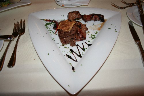 メインは、ミックスグリル。ビーフのフィレとポークのフィレ、ラム・チョップ、仔牛のステーキにドイツらしいベーコン巻きソーセージ。