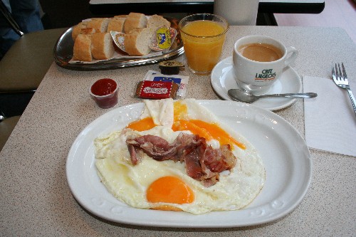 ということで、ワッフルで有名な店に入る。ワッフルも食べようかと思ったけど朝なので普通の朝食にした。