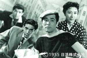 歌とジョッキーに森繁久彌。ナレーションでなくジョッキーなのだ。ラジオのディスク・ジョッキーのようにお喋りしている。オープニングは、森繁の歌。いろんな説明をしながら、時に登場人物に話しかけたりする。 そ んな風にドタバタコメディーが始まったかと思えば、いつの間にか銀座の花屋と影のある女とのラブ・ロマンスへ、と思ったら「第三の男」を真似したようなサ スペンスへと展開していく。少女頃に絵を描いてくれた初恋の人、その人が描いた自分の肖像画のサイン G.M.、そのイニシャルの人物が生きている、それ がダークサイドのボスらしい、女の家の前でいつも写生をしている謎の人物と、なんとも盛りだくさんの不思議な映画。 物語はさておき、1950年代の銀座の街を探検するのが非常に楽しい。どこもよく知っている場所なのに、今と全く違う。銀座の街を水上バスが行き、都電が走り、見たこともないネオンが輝く。変わらないのは、和光の時計台だけか・・・。 月 丘夢路は美しく、北原三枝が元気ではじける。少女の浅丘ルリ子に、どこに出ているのか分からなかった岡田真澄、若すぎてよく分からなかった芦田伸介に佐野 浅夫、正義感の男三橋達也 、最後にちょっとしか登場しないのに、「第三の男」を思わせる陰影の中で圧倒的な存在感の河津清三郎 となかなか豪華なキャスティングだったねえ。 「ヒロポンなんてやめろ」という台詞が時代やねえ。 助監督に今村昌平。なんとも不思議な映画だ。笑えるサスペンス。 栗2つ。京橋・近代フィルムセンターにて。 |