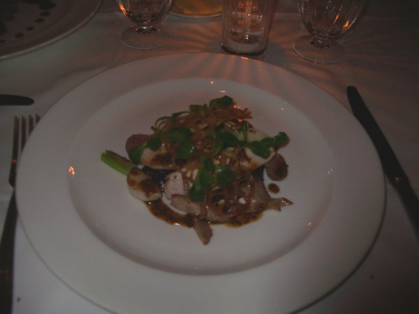 大学時代の友人で当時ミス慶應であったレディからメールが届く。「突然だけど、シャンパンとワインを飲みながら食事がしたいの・・・」という訳で出かけてきた。いろんなお店の候補があったのだけど、年末でどこも混んでいて、なんとか予約ができた六本木のTERROIRへ。ここはランチで来たことがあるが、夜は初めて。ガラス張りで洒落た店内は、綺麗で清潔感漂う。 僕も彼女も旅好き、酒好き、映画好き、美味いもの好きで話は尽きず、気づくともう電車が無い時間。年末でごったがえす六本木、帰りのタクシーがなかなかつかまらなかった。 Restaurant & Wine Bar TERROIR レストラン&ワインバー テロワール 港区六本木5-16-47 HOUSE 5302 2F 03-3505-2500 シャンパンは、Louis Roederer Brut Premierにした。先付けの一口ピザ。店内が暗いのでデジカメのピントが合わず今回料理の写真が綺麗に撮れなかった。どれも見栄えはいまいちだけど、実際は綺麗でとても美味しい。 ラクレットチーズと海老、帆立貝のパート・フィロ包み焼き 飛騨山椒の風味、空芯菜と共に これ、美味しかったなあ。シャンパンとも良く合う。チーズと海老、帆立がこれまた合うのよねえ。 ランド産フォアグラのポワレ、トリュフ風味のソース 姫リンゴのロティとアジャン産のプラムを添えて 伊達鶏とアスパラガスの自家製ストラッチ 牡蠣とブロッコリーのペペロンチーノ、リングエッティーネ 肉をメインにしたので赤ワインに。イタリアのBrunello di Montalcino。 このところもっぱら日本酒党だったけど、やっぱりワインも美味しいやねえ。酔いしれる・・・。 フランス産仔鴨のロティ、カリンのクネル添えシェフ自慢の木苺のソース 僕は、鴨にした。 フランス産ラパン背肉のロティ、赤ワインのリゾットと共にディジョン粒マスタードソース 洋梨のロースト、栗の蜂蜜とオレンジのソース タヒチ産バニラアイスクリーム添え デザートだけ妙にピントが合ったなあ。(笑) 完熟バナナのキャソナード焼き リッチなメイプルアイスクリームと共に |