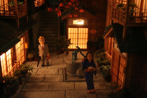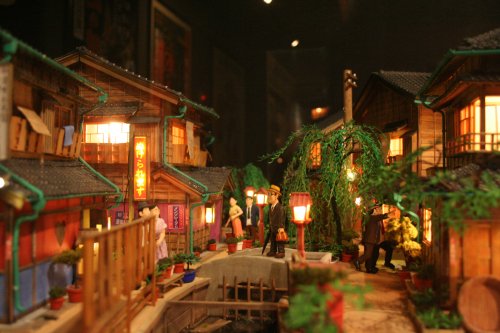 館というにはあまりに小規模で最初気がつかなかった。駄菓子屋さんの店内の小スペースのギャラリーといった感じだ。懐かしい風景のジオラマと映画のポスターが展示してある。ジオラマでしかこうした日本らしい景色が見られないのが、なんとも残念だ。